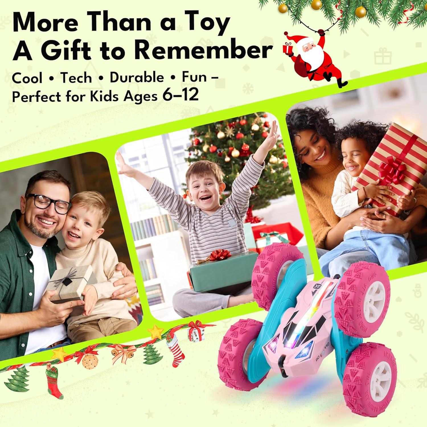 Unleash Non-Stop Stunt Action, Anywhere! — Get ready for instant adventure with this rugged RC stunt car! Engineered for kids who love excitement, it handles everything from living room floors to backyard trails with ease. Watch as they perform thrilling stunts, master challenging terrain, and build real-world skills—all while having a blast. With tool-free swappable batteries for extended play and mesmerizing color-changing lights, the fun never has to stop. Tough, responsive, and designed for endless action, it’s the perfect gift for active kids who love to explore and conquer.