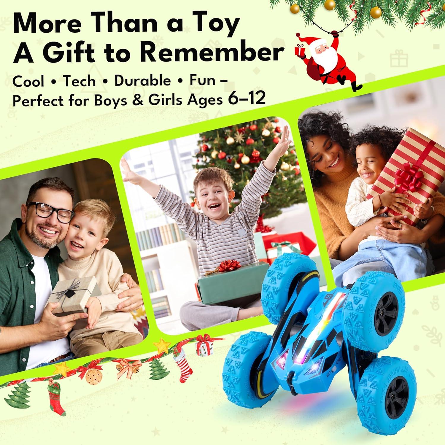 Unleash Non-Stop Stunt Action, Anywhere! — Get ready for instant adventure with this rugged RC stunt car! Engineered for kids who love excitement, it handles everything from living room floors to backyard trails with ease. Watch as they perform thrilling stunts, master challenging terrain, and build real-world skills—all while having a blast. With tool-free swappable batteries for extended play and mesmerizing color-changing lights, the fun never has to stop. Tough, responsive, and designed for endless action, it’s the perfect gift for active kids who love to explore and conquer.